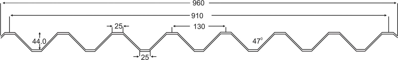 Seltech Deck is cold formed in 44mm depth, 130mm pitch, cover width of 910mm and overall width of 690mm out of galvanized and HR Coils in the thickness of 0.80mm to 2.5mm.
